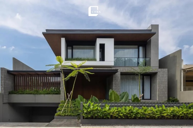 Selain itu, kehadiran taman kecil di area teras depan rumah yang ditanami tanaman hijau berdaun lebar juga semakin menambah nuansa alami dan segar, yang membuat tampilan keseluruhan eksterior rumah terlihat lebih hidup, seimbang, dan menarik.