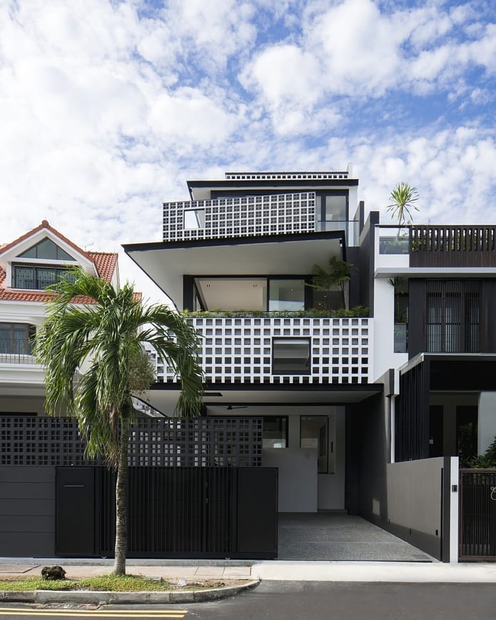 Model pagar roster warna hitam pada hunian ini menghadirkan kesan modern, minimalis, dan elegan. Penggunaan warna hitam yang dibuat senada dengan pagar geser (sliding) menciptakan tampilan fasad yang selaras. Roster beton dapat membantu menjaga privasi area dalam rumah tanpa menutup area rumah secara penuh. Pola berlubang pada roster tetap memungkinkan sirkulasi udara berjalan dengan baik serta menghadirkan pencahayaan alami yang optimal dan dramatis.