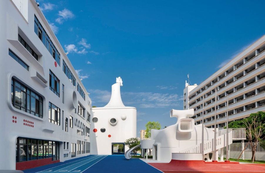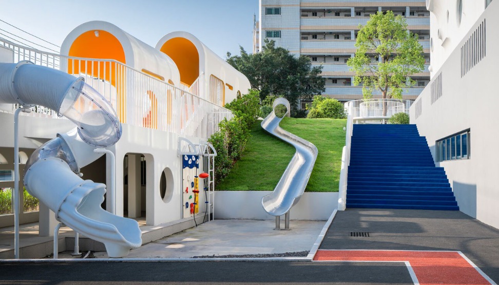 Dika Architectural Design Center menghadirkan pendekatan segar dalam dunia pendidikan anak usia dini melalui Fuzhou ESUO Future Kindergarten, sebuah taman kanak-kanak dengan bentuk tidak beraturan yang playful dan penuh imajinasi. Berlokasi di Fuzhou, Tiongkok, proyek ini mendefinisikan ulang konsep taman kanak-kanak konvensional menjadi ruang eksplorasi tiga dimensi yang merangsang rasa ingin tahu anak sejak dini.