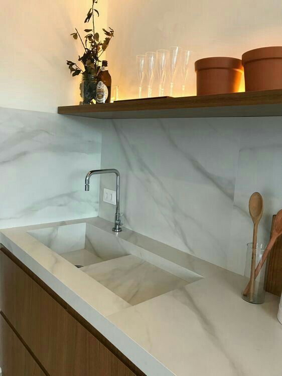 2. Tempat Cuci Piring Keramik dengan Backsplash Menyatu