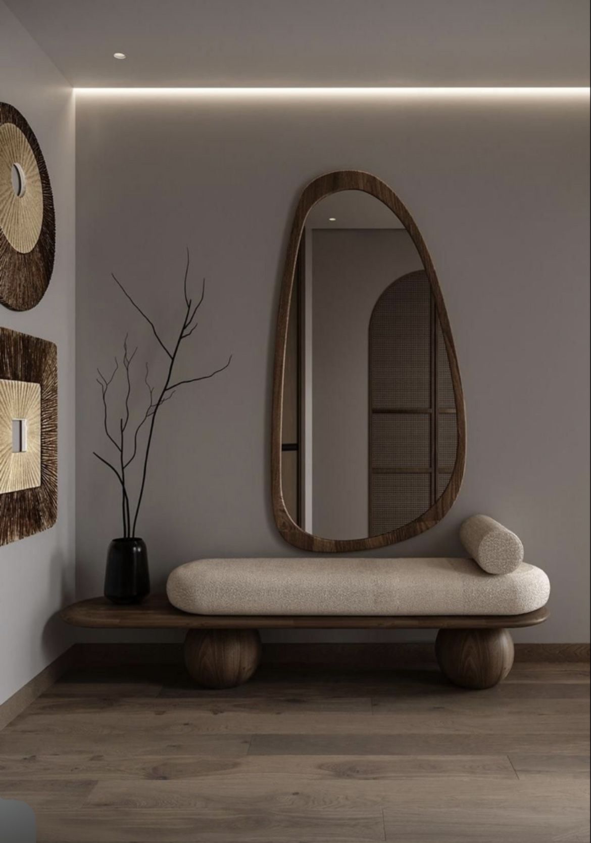 Bagi yang menginginkan nuansa hangat dan natural, material seperti kayu, rotan, atau anyaman menjadi pilihan menarik. Hiasan dinding berbahan alami mampu menghadirkan tekstur dan kedalaman visual, sekaligus memberikan sentuhan organik yang menyeimbangkan elemen modern dalam ruang.