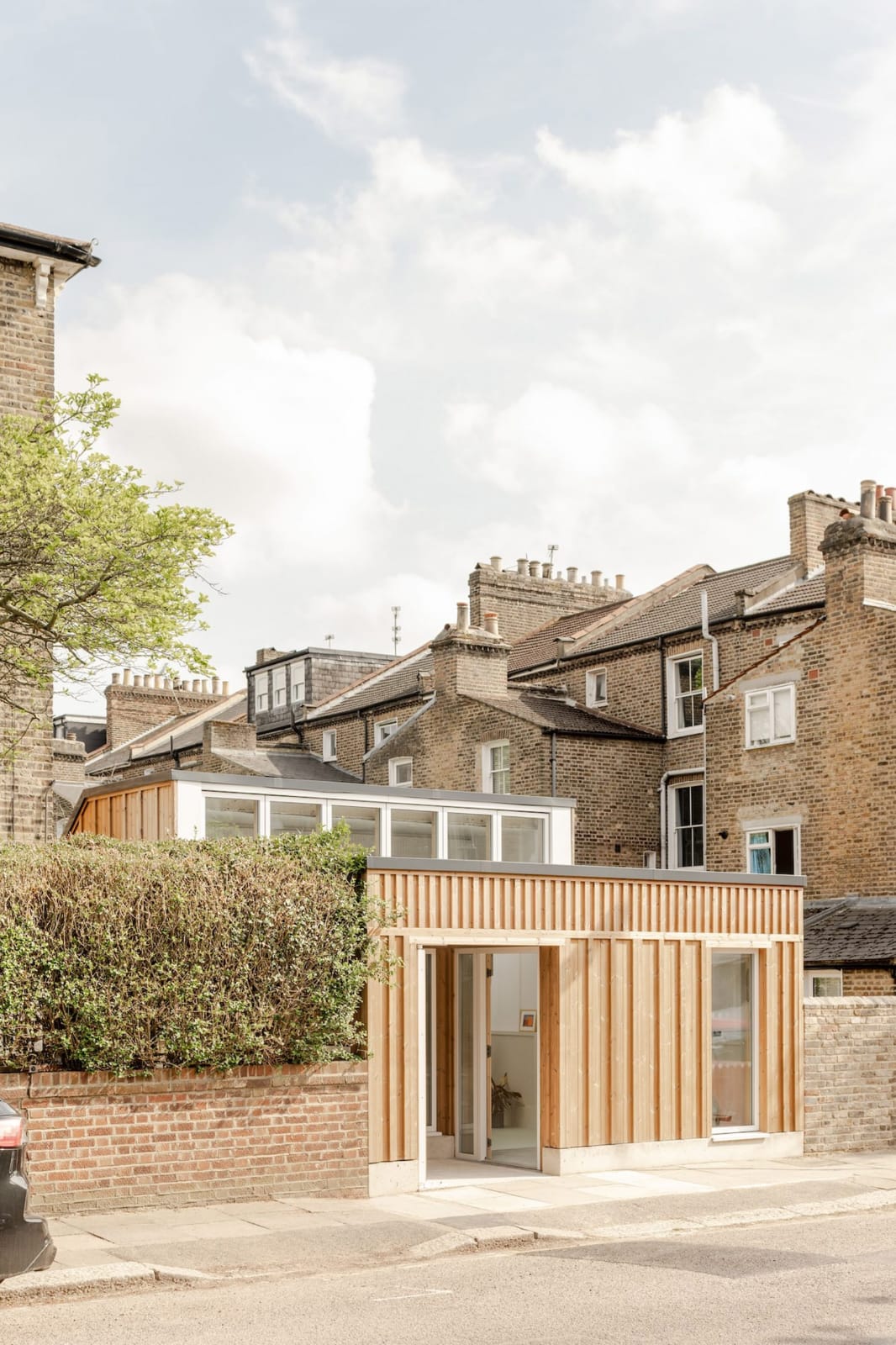 Proyek ini lahir dari kebutuhan Stroud Green Housing Co-operative akan kantor permanen yang juga bisa berfungsi sebagai ruang drop-in bagi warga. Meskipun berskala kecil, bangunan ini dibentuk dengan cermat agar terasa lebih besar dari dimensi sebenarnya.