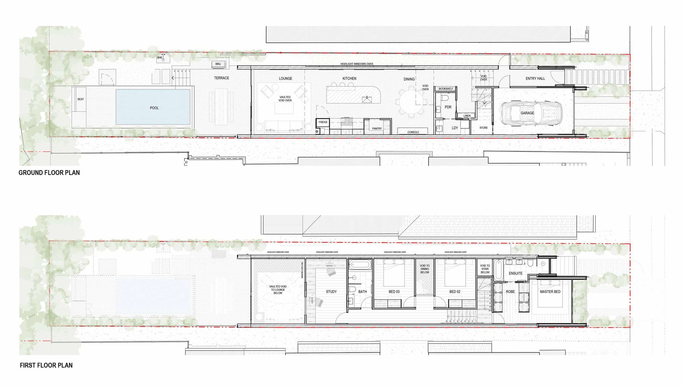 Pada tahap awal proyek, ditemukan bahwa bangunan lama yang berasal dari awal abad ke 20 memiliki pondasi yang sudah tidak layak secara struktural. Keputusan pun diambil untuk membangun ulang rumah dari nol. Meski demikian, James Garvan Architecture tetap menjadikan karakter arsitektur lingkungan sekitar sebagai pijakan utama dalam perancangan.