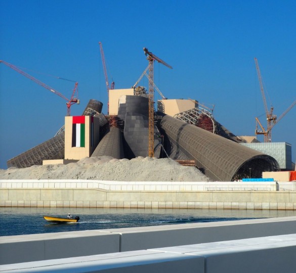 Museum terbesar dari jaringan Guggenheim ini menampilkan seri galeri futuristik karya Frank Gehry yang juga merangkul teknik pendinginan tradisional seperti wind tower di tengah iklim gurun Saadiyat Island. Awalnya bangunan ini sendiri diestimastikan selesai pada tahun 2025 dan pembukaan untuk pengunjung kemungkinan di tahun 2026.
