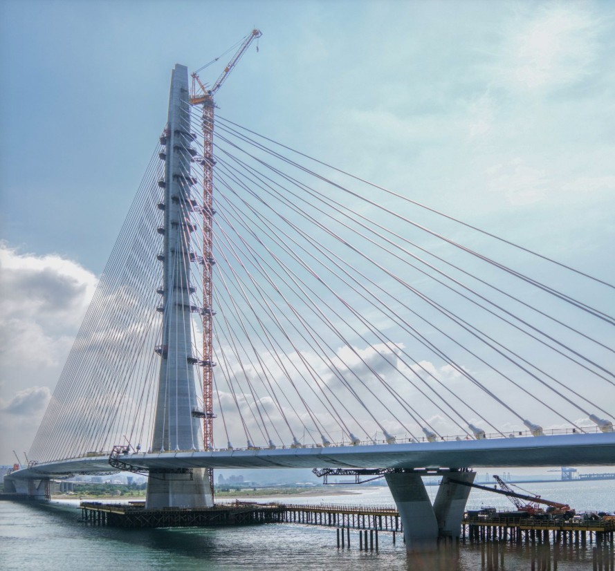 Dirancang oleh Zaha Hadid Architects, jembatan ini akan menjadi cable-stayed bridge asimetris dengan tiang utama tertinggi di dunia, memadukan fungsi struktural dengan keindahan kontemporer. Bangunan ini akan dibuka secara resmi pada tanggal 12 Mei 2026 dan diupacarakan 9 Mei 2026 sebelum pembukaan resmi.