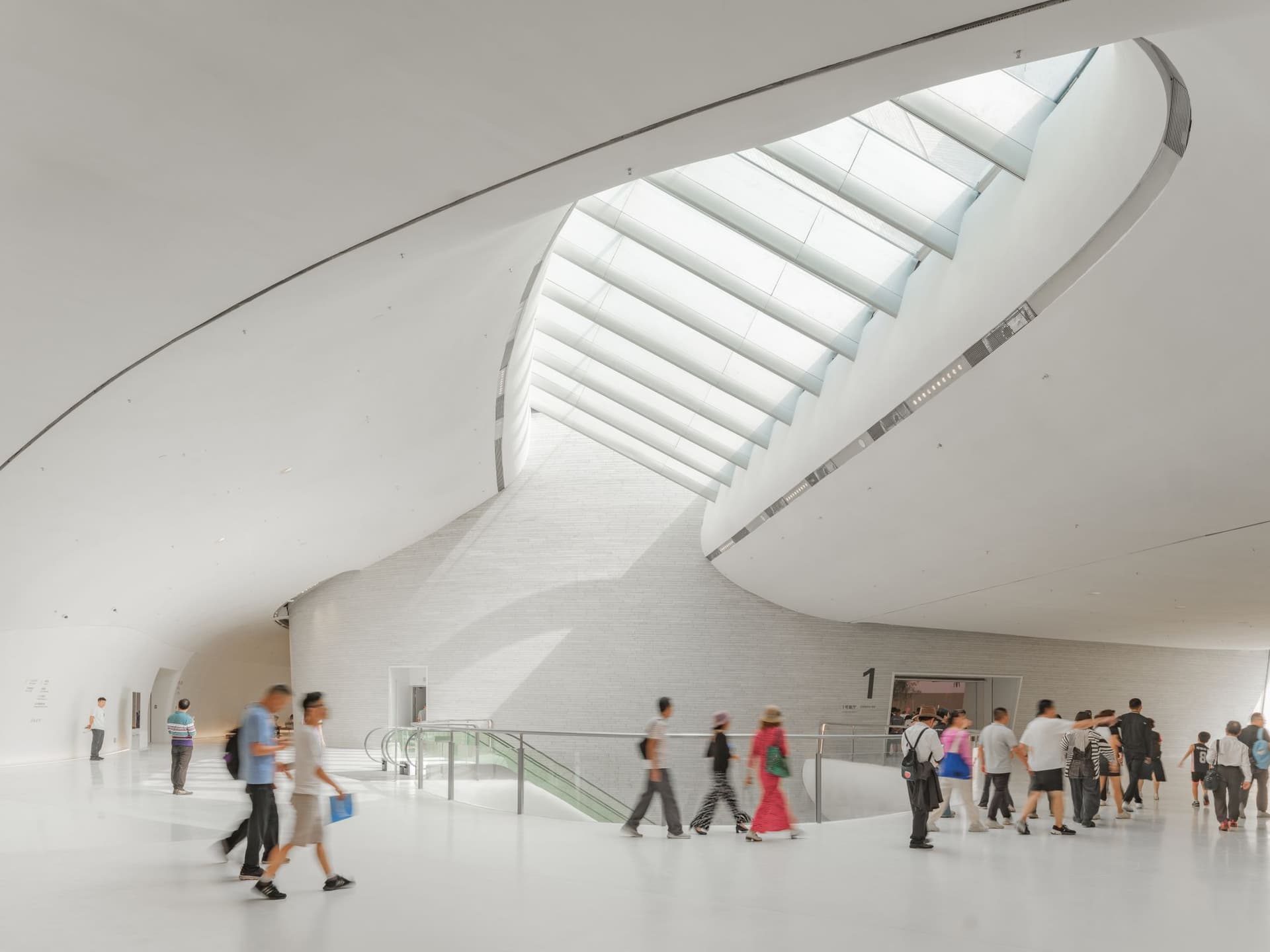 Sirkulasi pengunjung dirancang tanpa hambatan lalu lintas. Mereka yang datang dari pusat komersial di sekitarnya dapat langsung menyeberang ke taman atap atau turun ke ruang budaya bawah tanah dengan aman dan nyaman. Shenzhen Bay Cultural Plaza menjadi inspirasi kuat tentang bagaimana arsitektur landmark dapat berfungsi sebagai ruang publik yang inklusif, fleksibel, dan berkelanjutan, sekaligus mencerminkan identitas kota masa depan.