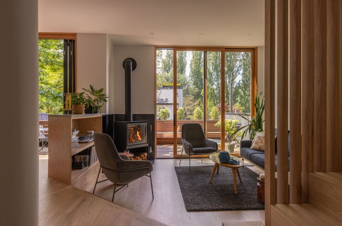 Selain aspek estetika dan fungsional, proyek ini juga memasukkan strategi Passive House dan upgrade efisiensi energi lain yang meningkatkan kenyamanan termal serta mengurangi dampak lingkungan. Sistem-sistem ini tidak terlihat secara kasat mata, tetapi secara signifikan meningkatkan pengalaman penghuni serta pengoperasian rumah setiap hari.