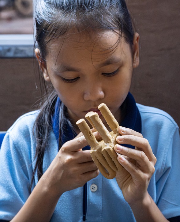 Untuk menerjemahkan gambar dua dimensi menjadi bentuk tiga dimensi, tanah liat dipilih sebagai material prototipe. Material ini mudah diakses, mudah dibentuk, dan memungkinkan anak-anak bereksperimen secara langsung. Setiap anak membuat model kursinya sendiri dari tanah liat, menjadikan imajinasi mereka hadir dalam wujud fisik. Model ini kemudian menjadi acuan bagi Taekhan Yun dalam memproduksi kursi versi akhir.