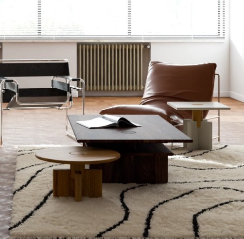 Kedua model ini tersedia dalam versi kayu solid seperti oak atau walnut yang menunjukkan keanggunan grain kayu alami, serta versi MDF berlapis cat lacquered yang lebih berani warnanya. Pilihan material ini mendukung fleksibilitas estetika sehingga cocok baik untuk ruang kecil maupun area yang lebih besar.