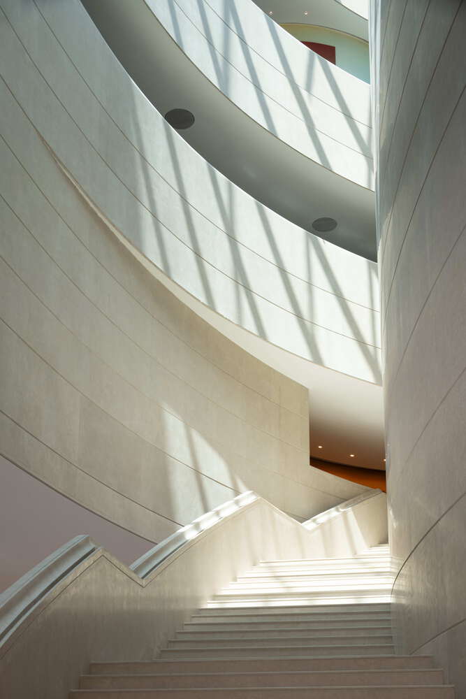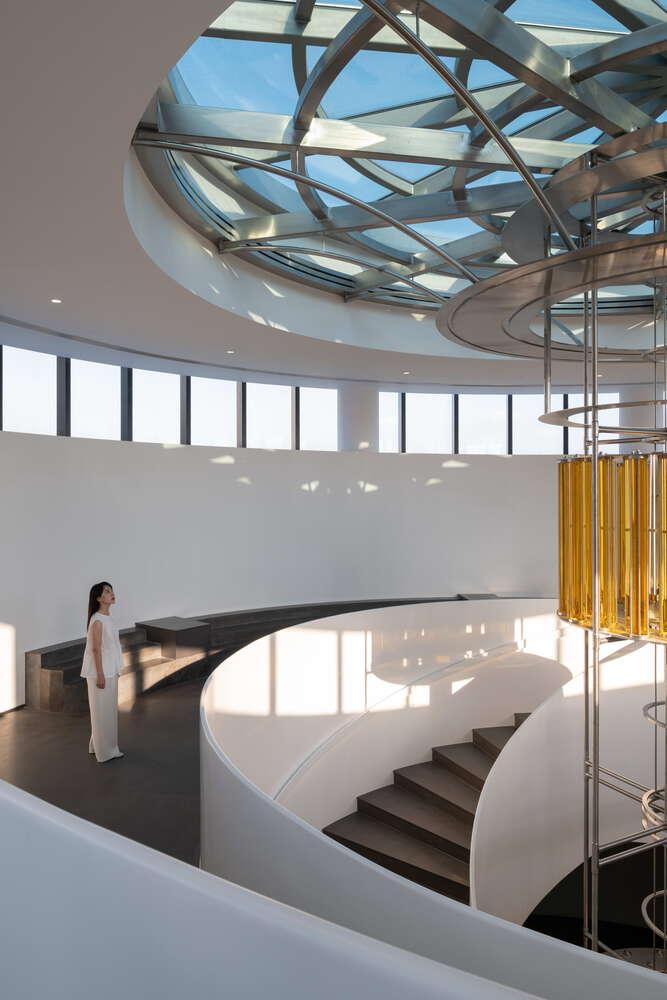 Di dalam, ruang pamer dirancang mengalir tanpa terputus. Atrium di tengah bangunan menjadi titik orientasi utama, sementara tangga melengkung dan galeri bertingkat mengarahkan pengunjung bergerak secara perlahan. Alur ini meniru cara aroma menyebar. Yaitu tidak menyebar langsung, tetapi bertahap.