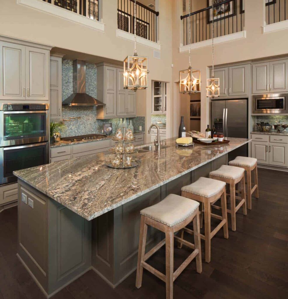 Dikenal sebagai bahan yang kuat dan tahan panas, granit mampu menahan beban berat serta goresan. Motif alaminya memberi kesan mewah tanpa kehilangan fungsi praktis. Perawatannya pun relatif mudah karena permukaannya tidak mudah menyerap noda.