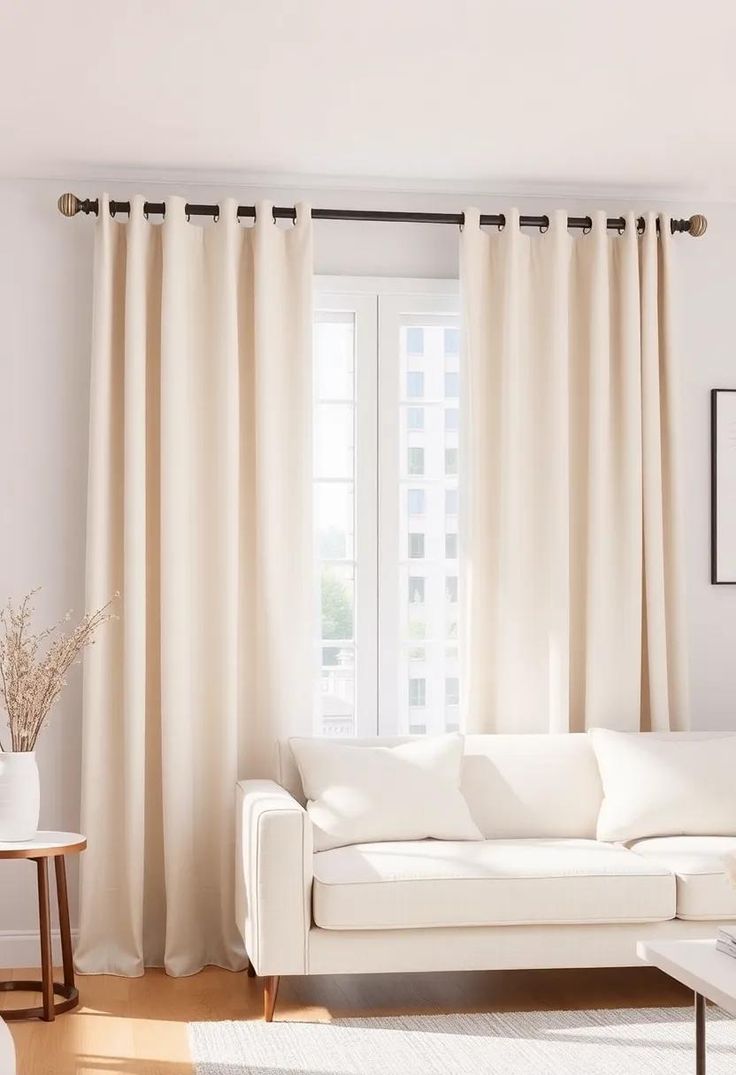 Untuk ruang tamu yang berukuran kecil, model gorden yang simpel dan fungsional sangat dianjurkan. Gorden dengan bahan tipis dan transparan memungkinkan cahaya masuk, sehingga ruangan terasa lebih terang dan luas. Model yang menggantung dari langit-langit hingga lantai juga bisa memberikan efek visual mempertinggi ruangan. Selain itu, gorden dengan pola vertikal atau model seperti roller blinds dan roman blinds sangat praktis dan tidak memakan banyak ruang. Menggunakan tieback atau pengikat ringan juga membantu membuka gorden dengan mudah agar jendela dapat dimaksimalkan. Keseluruhan model ini bertujuan agar ruang tamu sempit terlihat lebih nyaman dan estetis tanpa terasa penuh.