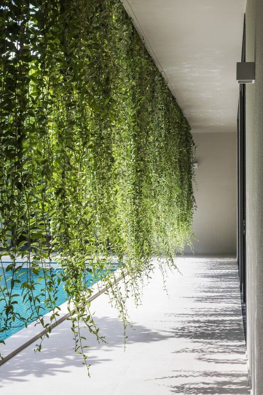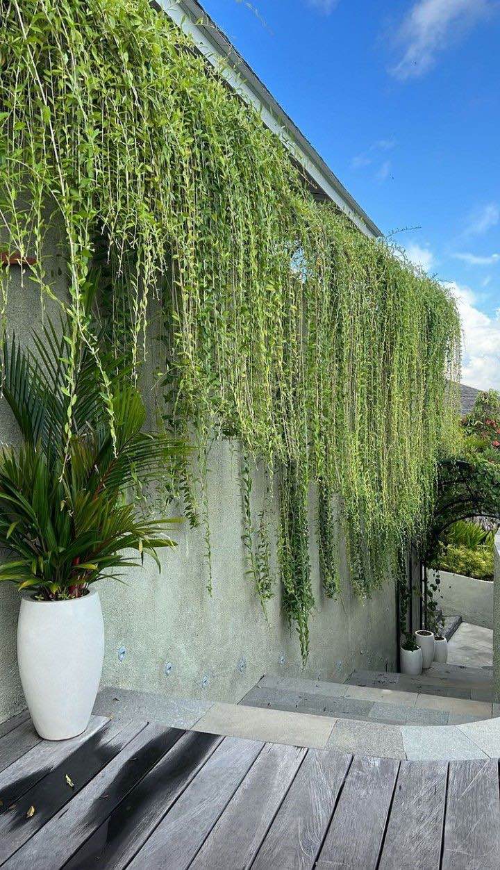 Tanaman ini tumbuh ke bawah seperti air terjun hijau, menciptakan efek visual yang lembut dan elegan. Banyak arsitek menggunakannya untuk menciptakan kesan tropis modern pada bangunan bertingkat.