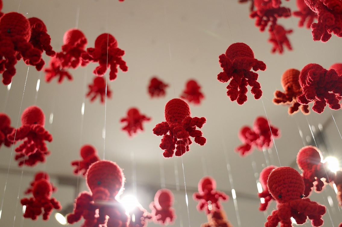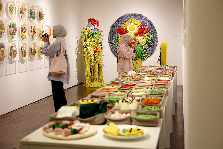 Selama pameran, pengunjung dapat ikuti Food Monster Activity: Create Your Own Food Monster dengan menyusun modul rajutan kue basah karya Mulyana menjadi monster versi pribadi yang akan difoto dan disimpan hasil cetak fotonya.