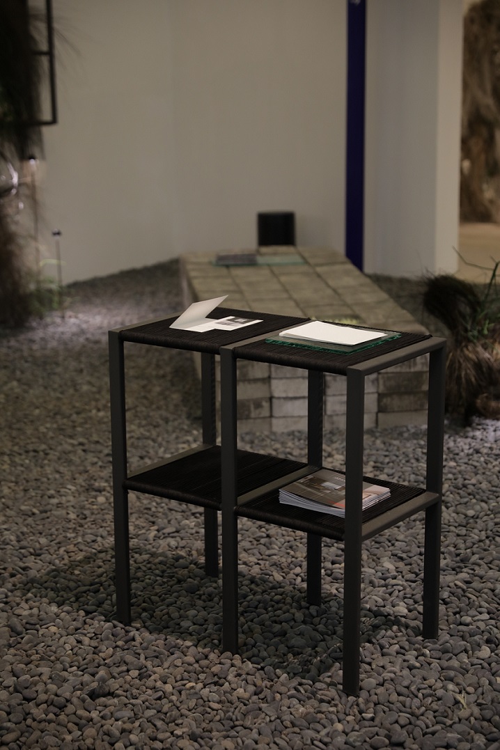 Furnitur yang ada representasikan eksplorasi arsitek akan metode weaving lewat penggunaan material unik sebagai dudukan dan sandaran kursi. Untuk kursi berkerangka silver tampak menggunakan polyurethane hose, sedangkan kursi berwarna hitam gunakan black paracord. Penerapan kedua material mewakilkan visi arsitek yang ingin mempertanyakan ulang pengalaman duduk dan mengundang para pengunjung untuk coba serta berdiskusi usai ikut duduk di ruang instalasi ini.
