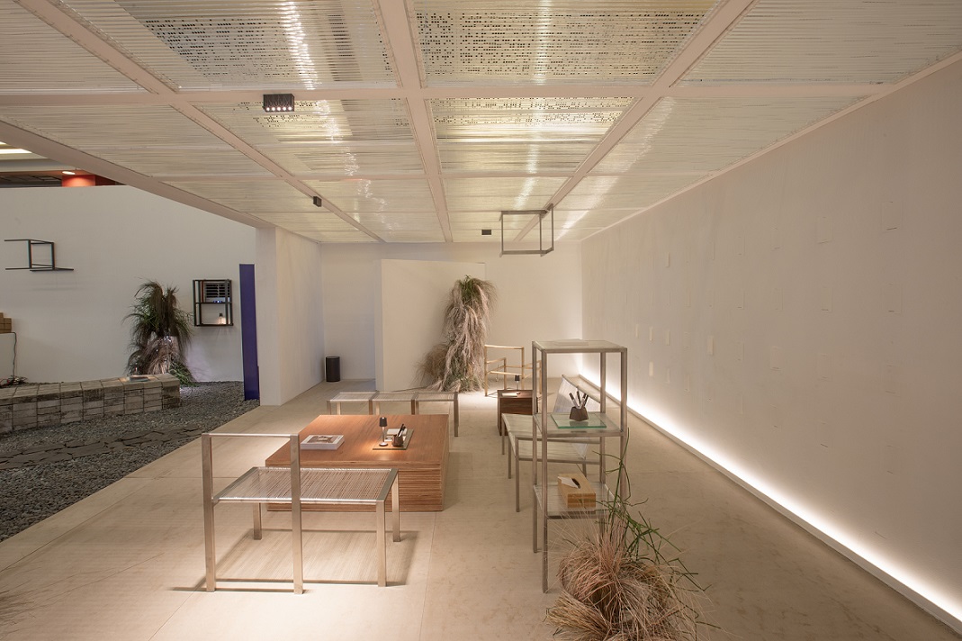 Deretan kursi tersebar dalam imaginary space yang terdiri dari material monolithic yang representasikan adaptibilitas dan versatility yang terbangun dengan apik berkat dukungan penuh dari Kreasindo Cipta Pratama sebagai kontraktor. Secara garis besar, pengunjung diajak melangkah dan mengeksplorasi ruang menyerupai taman yang dilapisi bebatuan kecil pada lantainya.