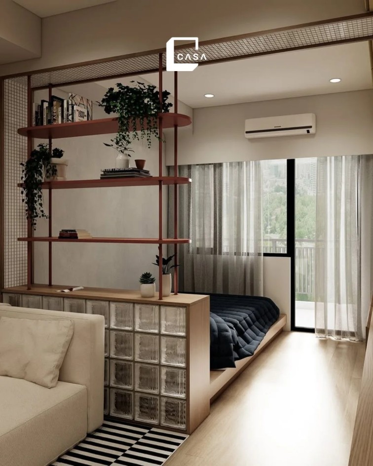 5. Desain Apartemen Minimalis dengan Partisi Transparan