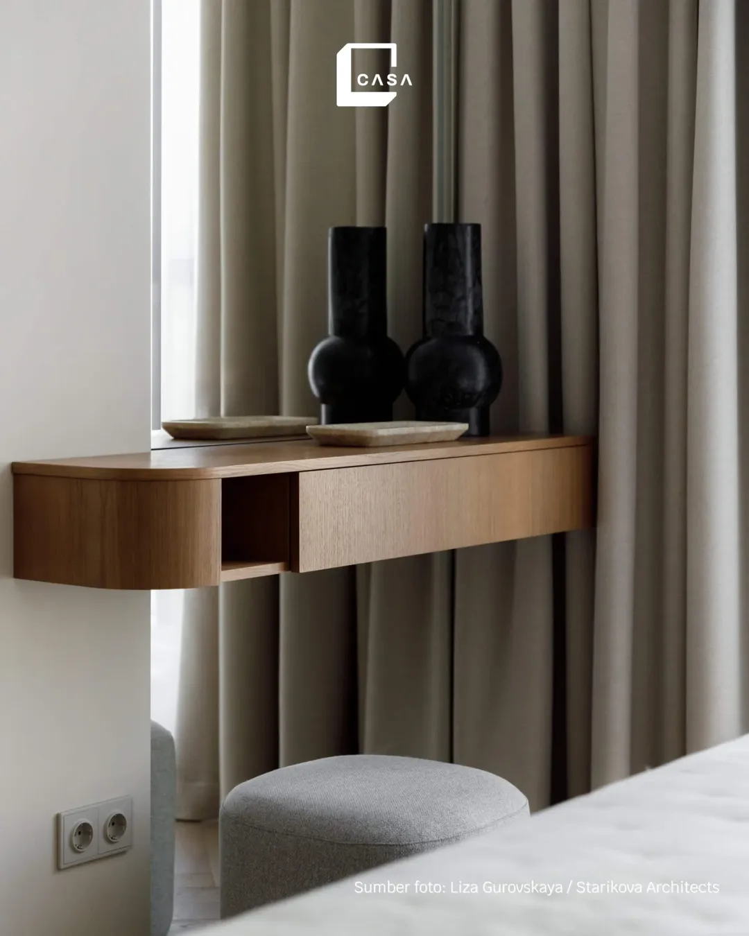 Jika Anda memiliki furnitur kayu di ruangan yang sempit, warna light brown dapat memberikan kesan luas.