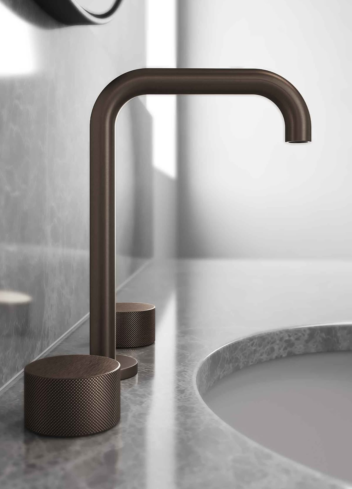 Kran modern yang menggabungkan air panas dan dingin dalam satu tuas pengatur. Banyak ditemukan di kamar mandi hotel atau rumah modern.