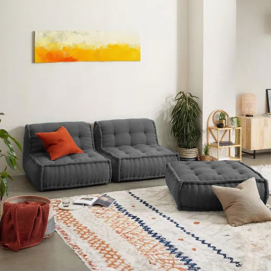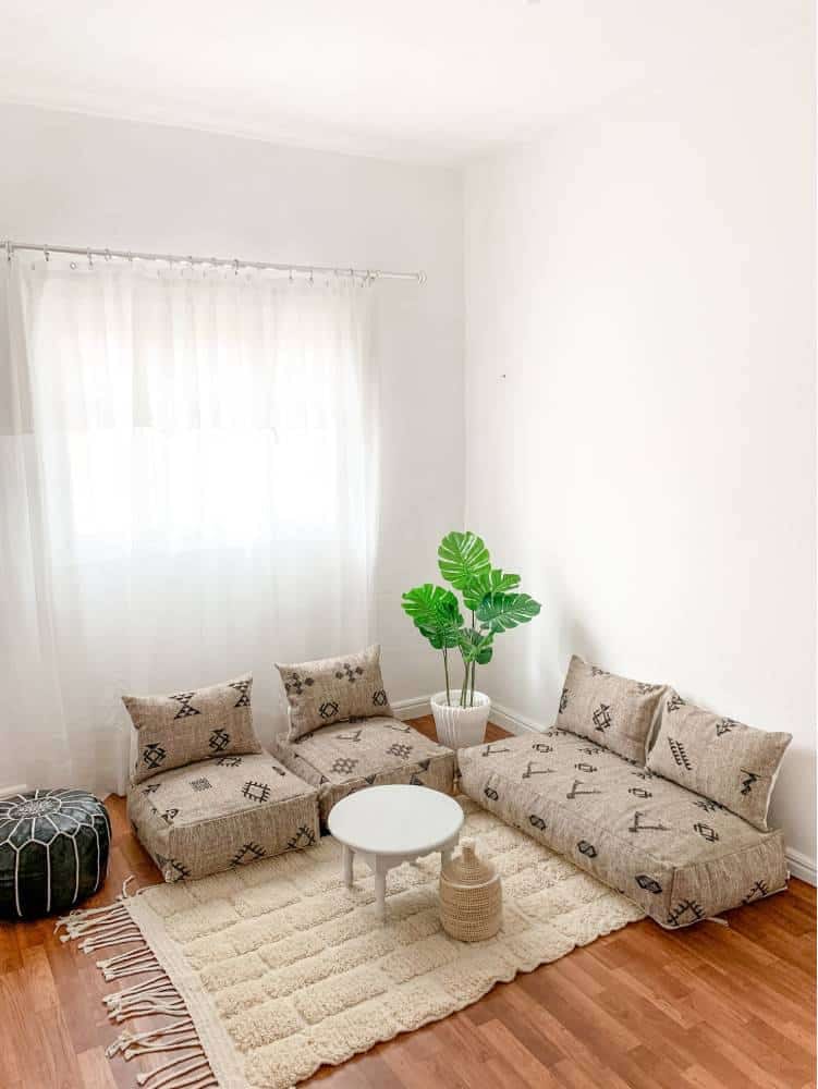 2. Tambahkan cushion atau bantal lantai berukuran besar untuk menciptakan titik duduk fleksibel.