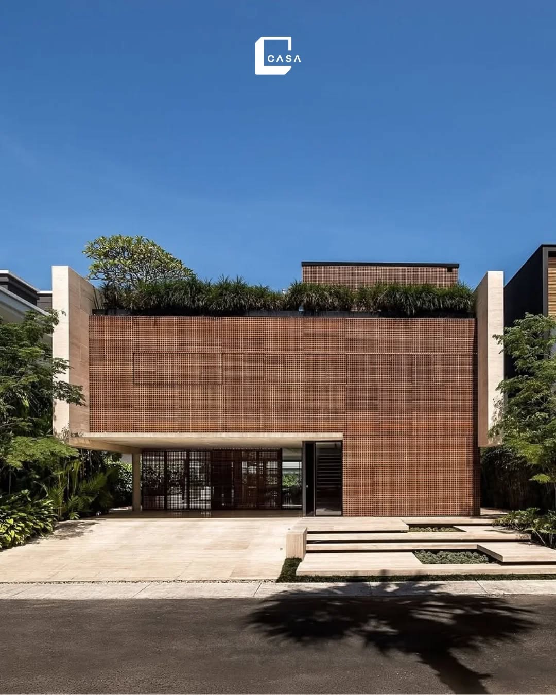 Roster adalah elemen dinding berongga yang biasanya terbuat dari beton atau tanah liat, dirancang untuk membiarkan udara dan cahaya tetap masuk. Untuk fasad rumah, roster memiliki keunggulan karena mampu menjadi ventilasi tanpa mengurangi rasa privasi. Pola lubangnya juga menciptakan bayangan yang berubah-ubah sehingga fasad terlihat lebih hidup dan tidak kaku. Secara visual, roster memberi karakter fasad yang ringan, dinamis, dan punya ritme yang jelas.