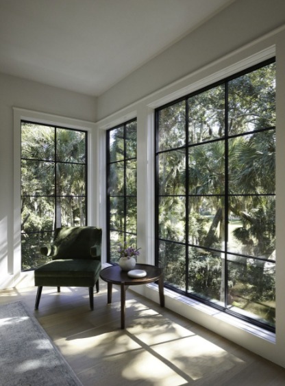 • Jendela kotak besar dengan bingkai tipis untuk tampilan modern