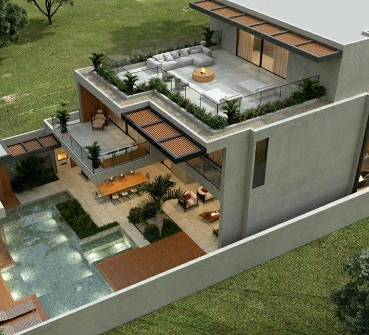 Atap terbuka diatas atau rooftop kini menjadi elemen signature dalam rumah bertingkat. Tidak hanya sebagai pelengkap visual tetapi ruang hidup tambahan yang terasa eksklusif. Beberapa ide desain yang sedang booming: