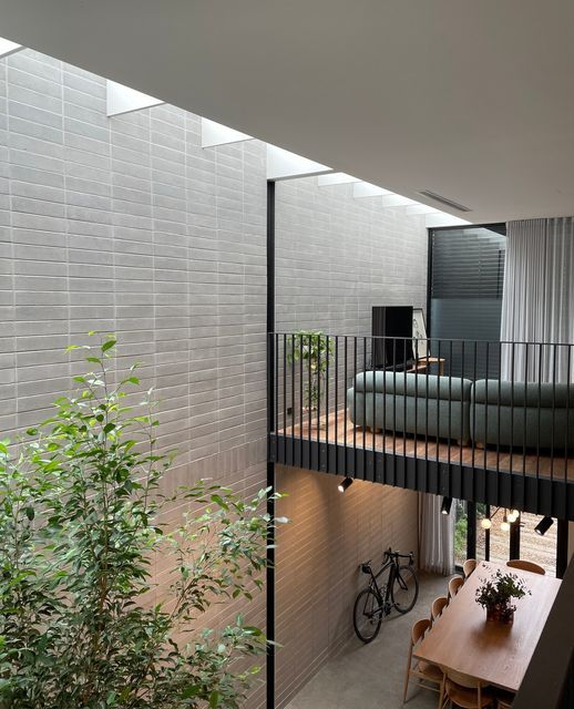 Void dapat menjadi pusat cahaya pada rumah dua lantai. Sementara tangga yang ditempatkan di sisi terang menghadirkan momen arsitektur yang lebih dramatik.