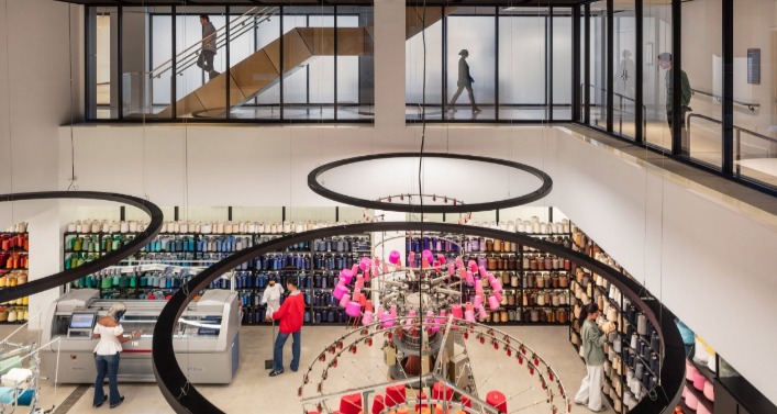 Fitur unggulan lainnya adalah “knitting lab” atau laboratorium rajut dan tenun yang disebut terbesar di sebuah kampus di Amerika Serikat. Lab ini sengaja ditempatkan di lantai bawah dengan visibilitas dari jalan untuk memperkuat konsep “lihat proses, bukan hanya hasil”.