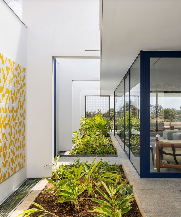 Casa Galeria dirancang untuk merespons iklim tropis dengan cermat. Dua taman linear ditempatkan di dalam denah rumah sebagai sumber cahaya alami dan penghawaan. Taman ini tidak hanya berfungsi sebagai elemen estetis, tetapi juga sebagai pembatas ruang yang lembut antara area sosial dan area privat.