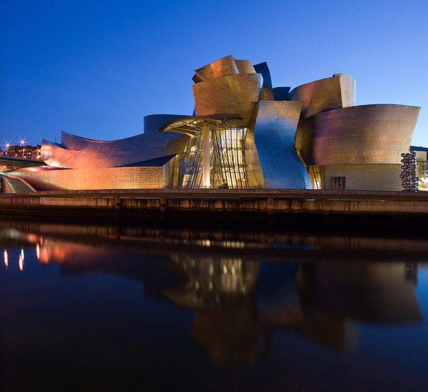 Guggenheim Bilbao adalah karya yang secara luas dianggap sebagai magnum opus Gehry. Bangunan dengan fasad titanium yang melengkung bagaikan cairan, memantulkan cahaya dan menciptakan siluet dramatis. Interiornya menampilkan ruang atrium luas dan galeri bersegi-tak beraturan sangat cocok untuk seni kontemporer.