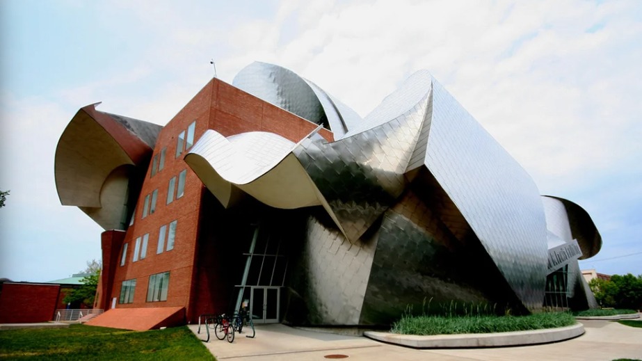 Struktur atapnya yang bergelombang menciptakan skala ruang yang dinamis di dalam bangunan. Proyek ini mencerminkan upaya Gehry menghadirkan kreativitas melalui arsitektur pendidikan.