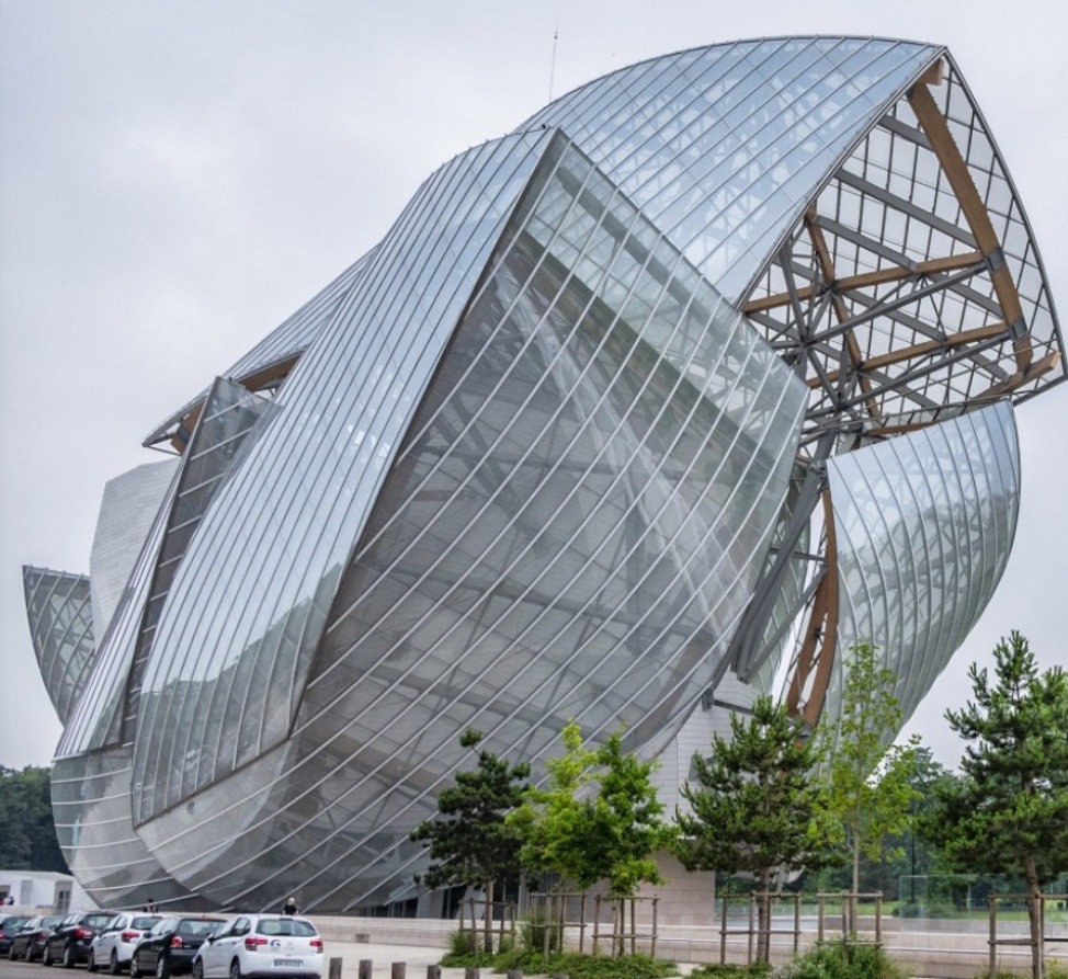 Fondation Louis Vuitton adalah contoh bagaimana Gehry memadukan arsitektur modern dengan elemen elegan dan halus. Terdapat bentuk “layar kaca” yang melambung di atas struktur beton putih mengingatkan pada kapal berlayar. Bangunan ini berfungsi sebagai pusat seni dan budaya, menampung galeri, ruang pamer, serta fasilitas publik, sekaligus mempertahankan kesan arsitektural yang ekspresif.
