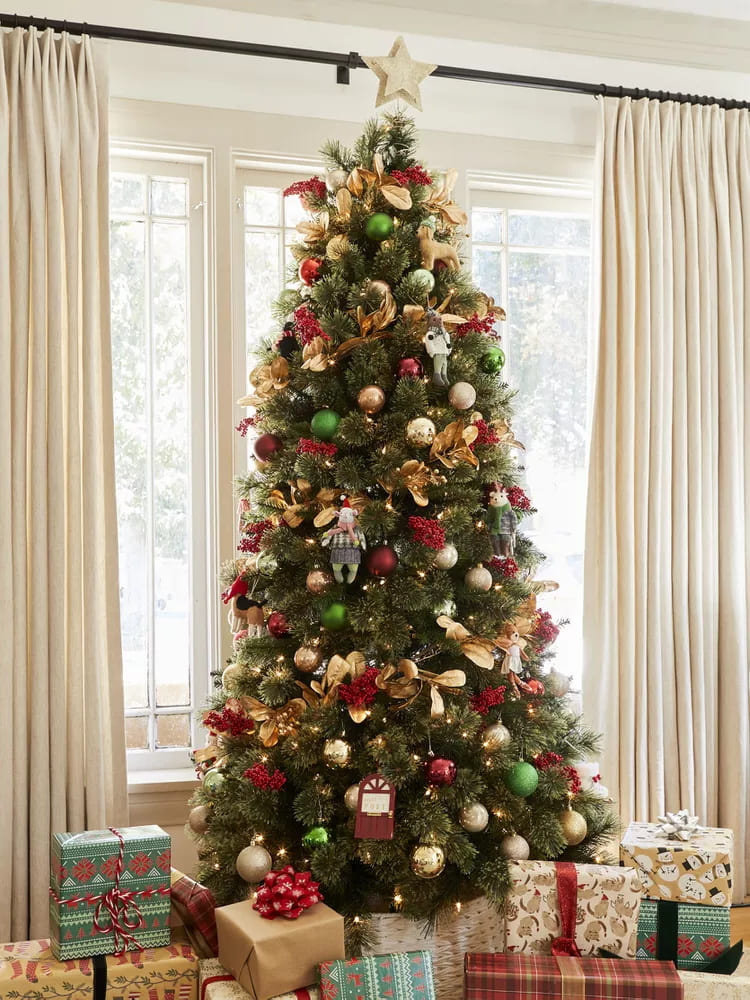 Tema pohon Natal klasik dengan warna hijau, merah, dan emas selalu menjadi pilihan favorit karena tampilannya yang hangat dan timeless. Kombinasi warna ini mudah dipadukan dengan berbagai ornamen, mulai dari pita, bola dekorasi, hingga lampu berkilau. Dengan dekorasi pohon Natal klasik seperti ini, suasana rumah terasa lebih meriah dan tetap elegan untuk perayaan akhir tahun.