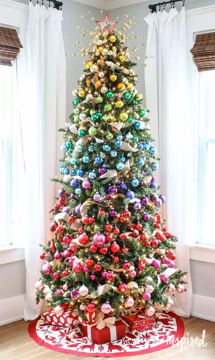 Pohon Natal dengan gradasi warna menawarkan tampilan yang lebih dinamis karena permainan tone dari bagian atas yang terang menuju warna lebih gelap di bagian bawah. Teknik dekorasi pohon Natal ini membuat visualnya tampak berlapis, rapi, dan modern sehingga cocok untuk Anda yang ingin dekorasi Natal yang unik dan estetik.