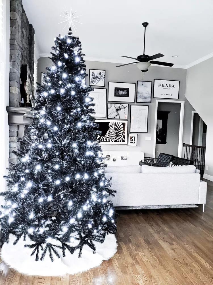 Pohon Natal hitam dengan aksen dekorasi putih menghadirkan kontras yang kuat dan modern, cocok untuk Anda yang ingin tampilan dekorasi Natal yang lebih berani. Kombinasi warna ini membuat pohon terlihat tegas namun tetap elegan, sekaligus memberikan kesan minimalis yang sedang tren untuk dekorasi Natal kekinian.