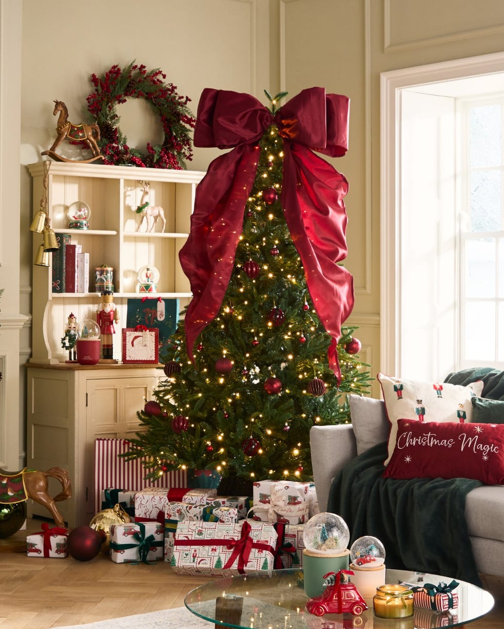 Pohon Natal dengan dekorasi pita memberikan tampilan yang lebih penuh dan anggun. Apabila dipadukan dengan berbagai ukuran dan motif. Tren dekorasi pohon Natal ini membuat setiap sudut terlihat lebih hidup karena pita dapat menambah tekstur, volume, dan sentuhan manis yang langsung mencuri perhatian.