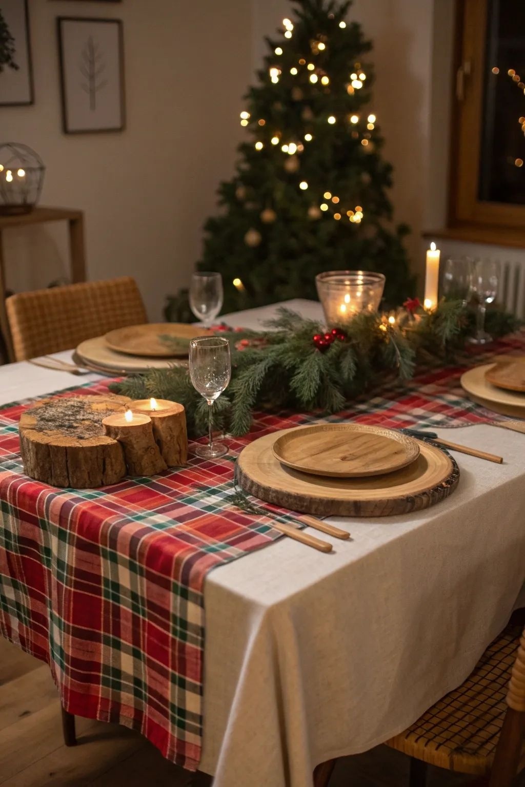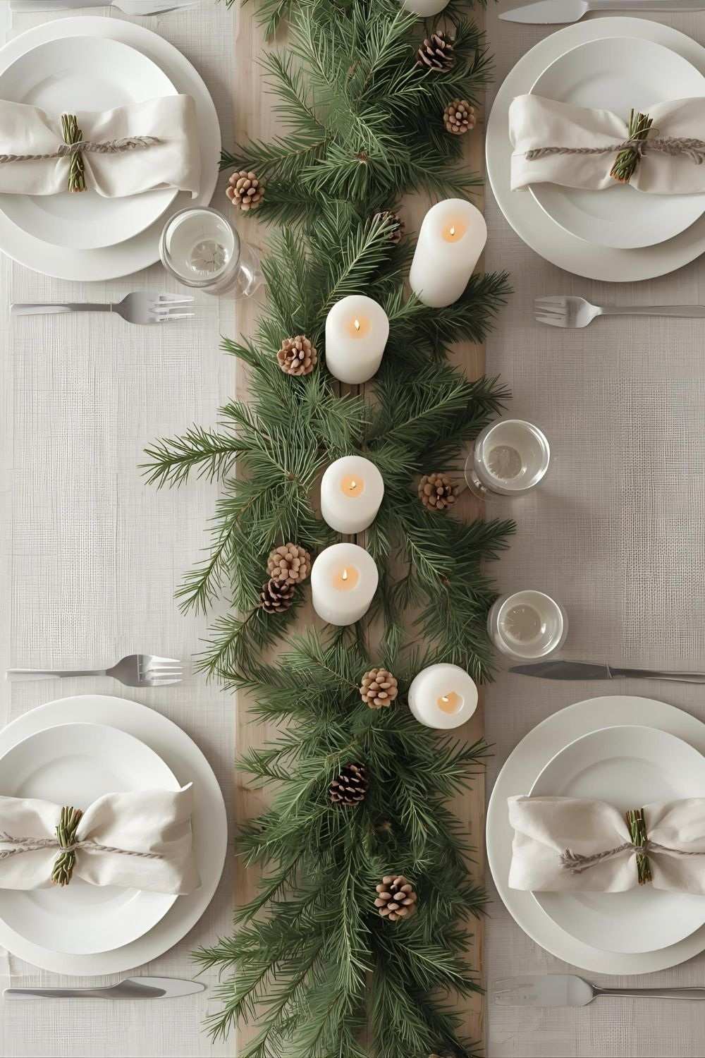 Banyak elemen yang identik dengan hari natal, salah satunya elemen alam seperti daun cemara, ranting pinus dan sebagainya. Untuk membuat meja makan terasa lebih hidup, Anda dapat menempatkan rangkaian hijau-hijauan di tengah meja makan. Elemen hijau ini bisa terdapat dari daun cemara sebagai garland atau potongan batang kayu kecil sebagai alas vas mini. Kehadiran elemen alam ini tidak hanya indah, tetapi juga memancarkan aroma khas yang menciptakan suasana natal semakin kental.