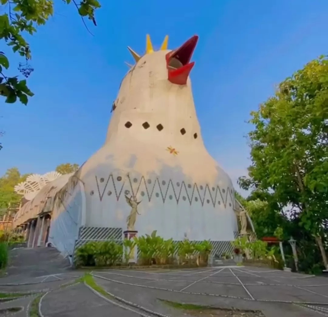 Gereja Ayam di Bukit Rhema dikenal lewat bentuk ikoniknya yang menyerupai burung merpati, simbol perdamaian dalam tradisi Kristen. Berada di atas perbukitan Magelang, bangunan ini memanfaatkan lanskap alam sebagai bagian dari pengalaman spiritual.