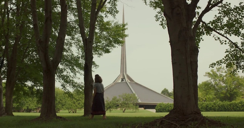 Columbus memperlakukan arsitektur modern sebagai ruang kontemplasi. Bangunan-bangunan ikonis di Columbus, Indiana, seperti North Christian Church karya Eero Saarinen, difilmkan dengan tempo lambat dan komposisi simetris.