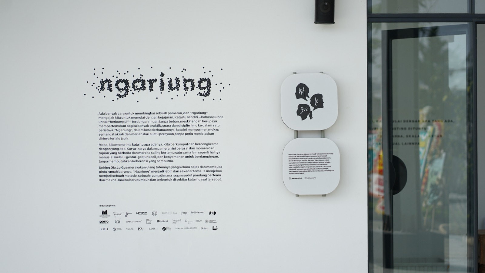 Sebagai penanda peresmian, digelar pameran seni bertajuk Ngariung yang menampilkan 82 karya dari 69 seniman. Pameran ini menghadirkan beragam medium, mulai dari lukisan, instalasi, hingga proyeksi visual. Salah satu seniman yang terlibat, Gilang Anom Manapu Manik, menampilkan karya berjudul Subterranean Warfare yang mengangkat isu ketegangan antara algoritma dan bioritme manusia. Ia mengapresiasi atmosfer kolaboratif yang memungkinkan keberagaman karya hadir dalam satu ruang.