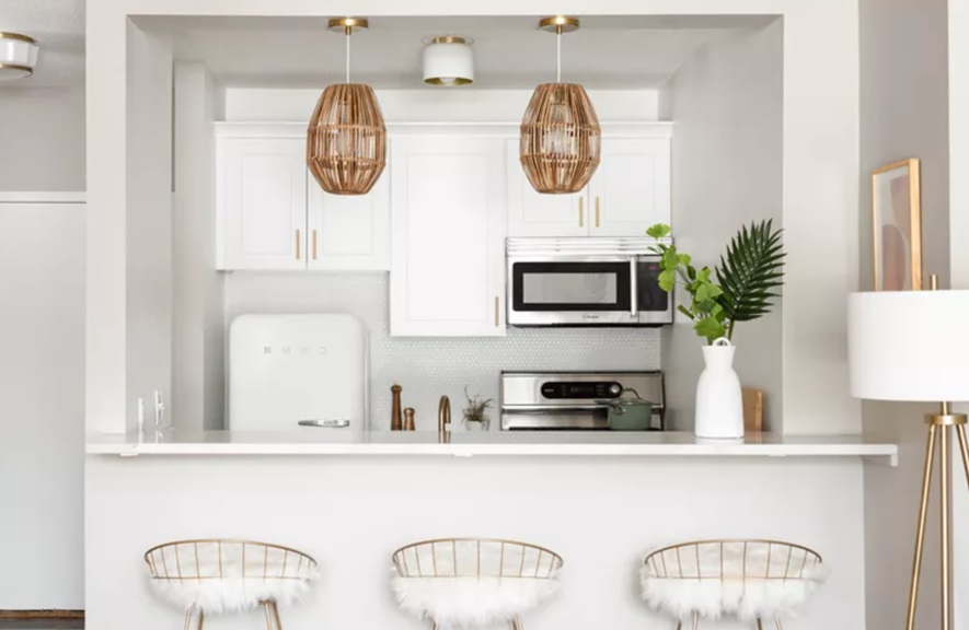 Jika Anda memilih desain hunian yang intimate, maka pemanfaatan meja island menjadi pilihan yang tepat untuk memaksimalkan ruang.