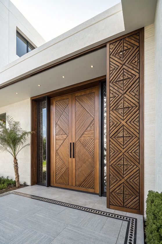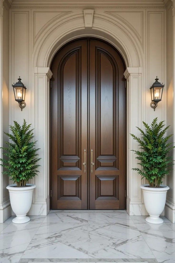 Menghadirkan detail ukiran artistik yang kaya dan elegan. Cocok untuk rumah bergaya klasik atau mediterania karena memberi kesan mewah, kokoh, dan berkarakter kuat pada fasad.