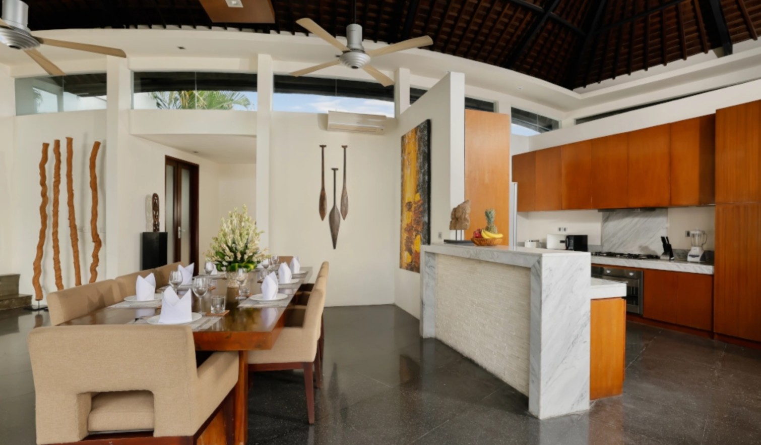 Di kawasan tebing Ungasan, Nagasutra Villa menghadirkan panorama Samudra Hindia tanpa batas. Dengan tujuh kamar tidur, kolam renang, jacuzzi, dan gazebo, vila ini menawarkan suasana dramatis yang cocok untuk menciptakan momen kebersamaan tak terlupakan. Sementara itu, Villa Tirtadari di Kerobokan memadukan arsitektur joglo tradisional dengan ruang terbuka luas, lengkap dengan kolam sepanjang 25 meter dan hamparan taman yang ideal untuk aktivitas keluarga.