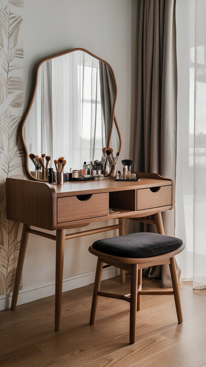 Dengan mempertahankan hanya barang yang benar benar digunakan, meja rias menjadi lebih praktis, bersih, dan nyaman.