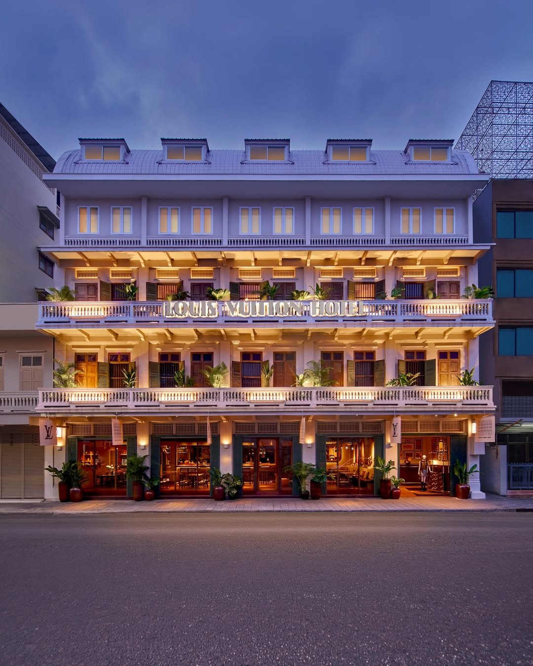 Didirikan pada 1854, Louis Vuitton membawa lebih dari 170 tahun warisan ke dalam konteks bangunan abad ke-20 di Bangkok. Kontras antara arsitektur rumah tradisional dengan intervensi visual monogram menciptakan dialog antara lokalitas dan global luxury branding.