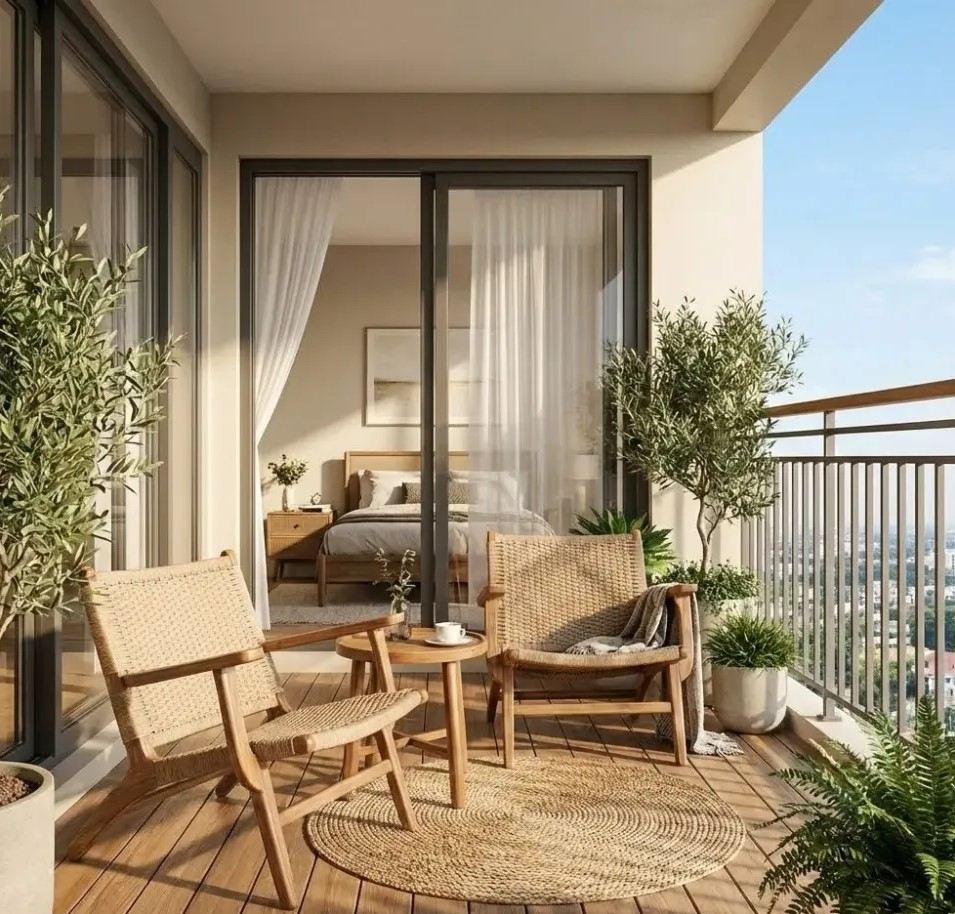 Ukuran balkon yang terbatas bukan halangan untuk tampil menarik. Furnitur lipat menjadi solusi praktis karena mudah disimpan saat tidak digunakan. Dengan penataan yang tepat, balkon kecil tetap bisa berfungsi maksimal tanpa terasa sempit.
