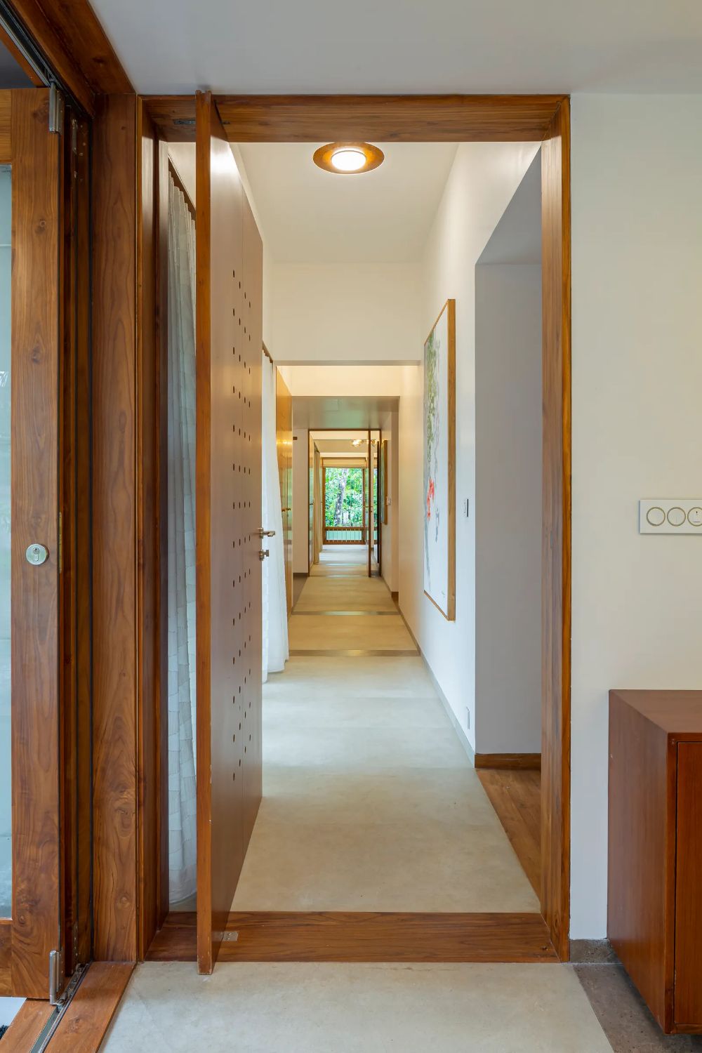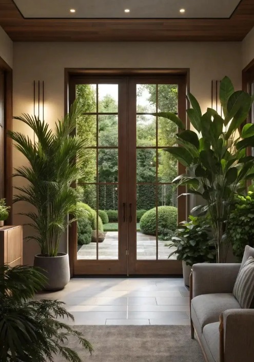 Tantangan lainnya adalah menjaga keseimbangan visual. Karena pintu berada di tengah, kedua sisi ruang harus ditata dengan komposisi yang harmonis agar tidak terlihat berat sebelah. Penempatan dekorasi, meja kecil, atau tanaman perlu diperhatikan agar ruang tetap proporsional.