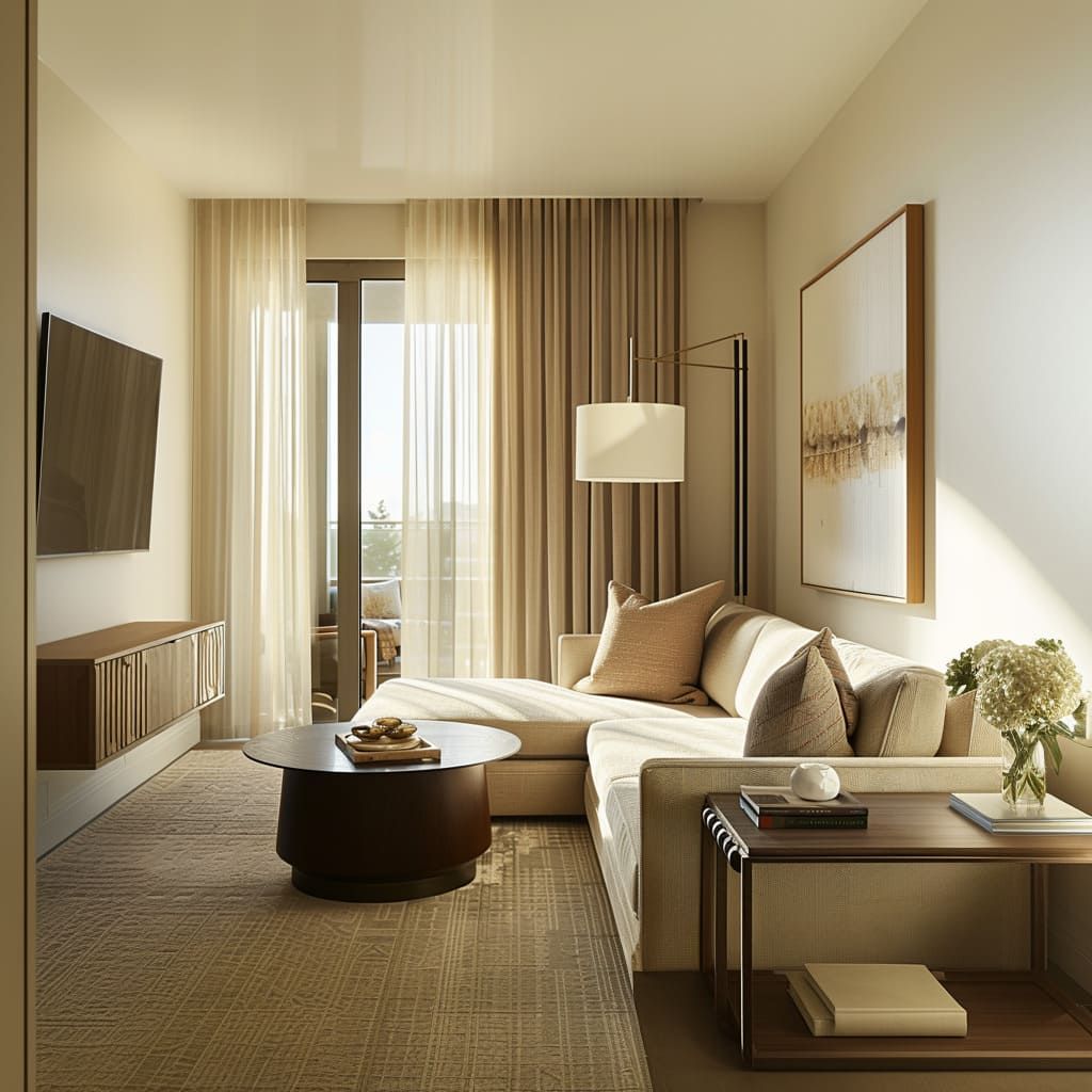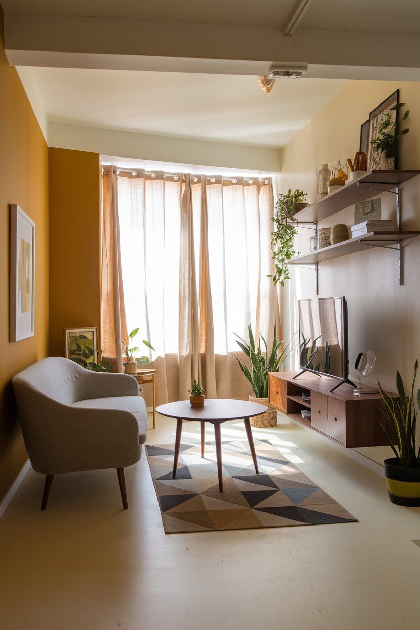 Langkah pertama adalah memilih furnitur yang proporsional. Gunakan sofa kecil, kursi single ringan, atau bahkan bench panjang yang menempel ke dinding. Hindari meja besar, cukup gunakan coffee table kecil atau meja samping minimalis.