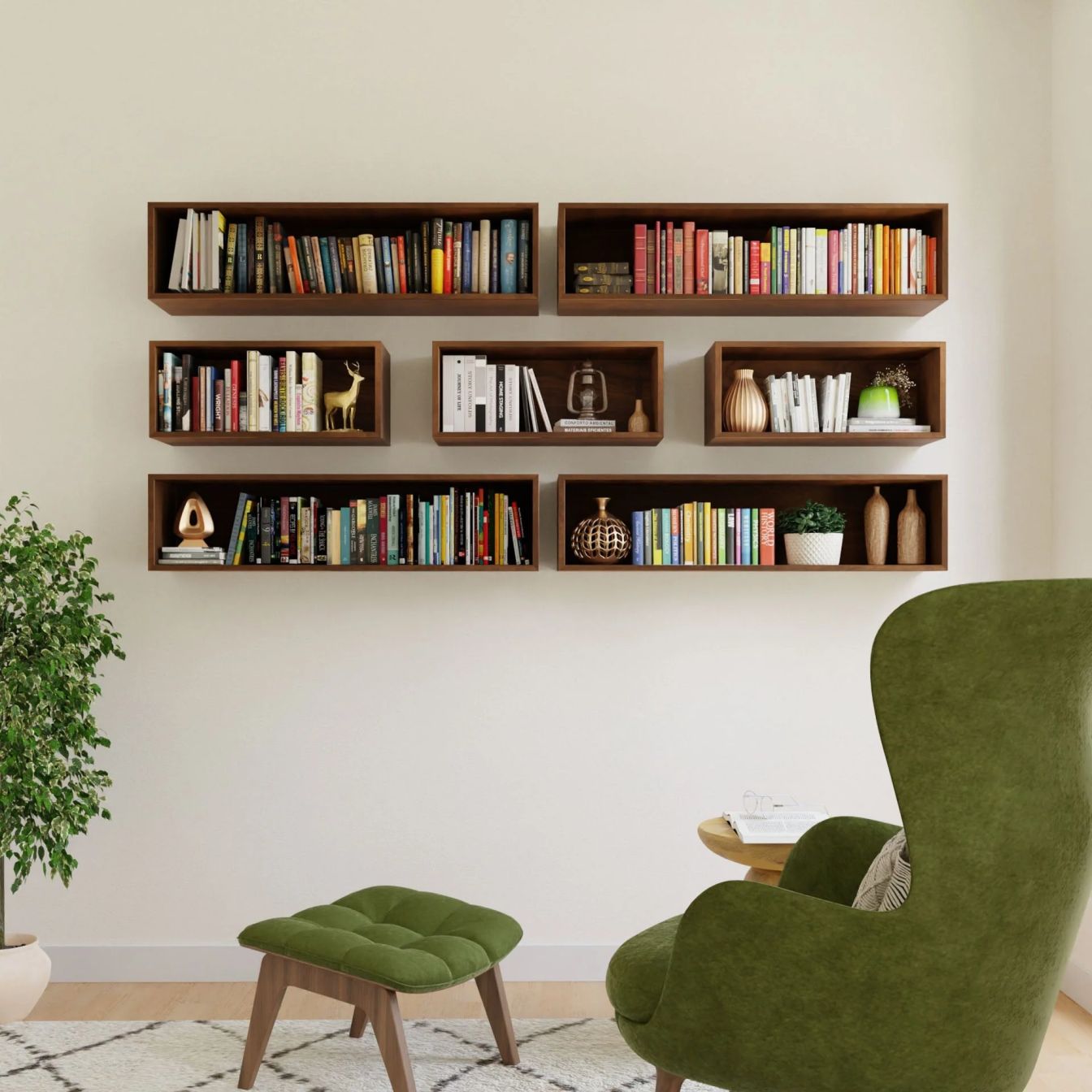 Rak buku model wall-mounted ini bisa menjadi pilihan tempat penyimpanan buku yang fungsional sekaligus estetik. Desainnya yang tampak menggantung pada dinding tanpa penyangga, menciptakan kesan seolah melayang sehingga menghadirkan tampilan yang rapi, modern, dan clean. Model rak buku seperti ini juga dapat membantu ruangan kecil terasa lebih lapang karena tidak memakan banyak ruang pada lantai.